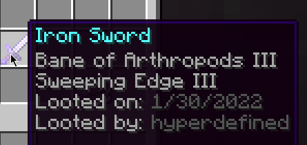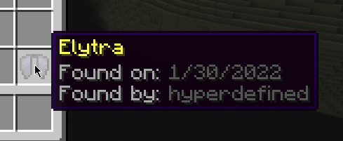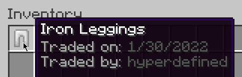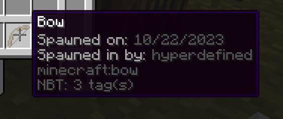 - Ownership of items when crafted, looted (from chests), traded, spawned via creative, and caught from fishing.