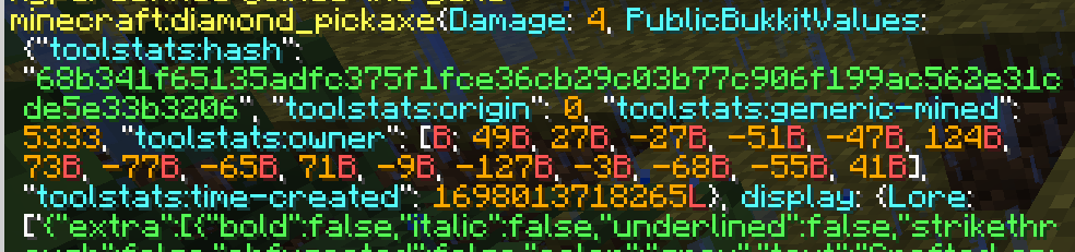 ToolStats is a Paper plugin that displays various stats about tools. This plugin is inspired off of GearStats. You can either track all statistics by default, or a use a token system to add statistics to tool/armor. You can configure how each statistic is shown on the item, or disable it!