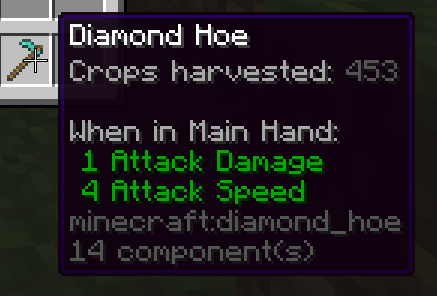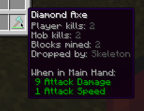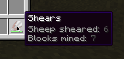 - Blocks mined (pickaxes, shovels, axes, hoes, shears).